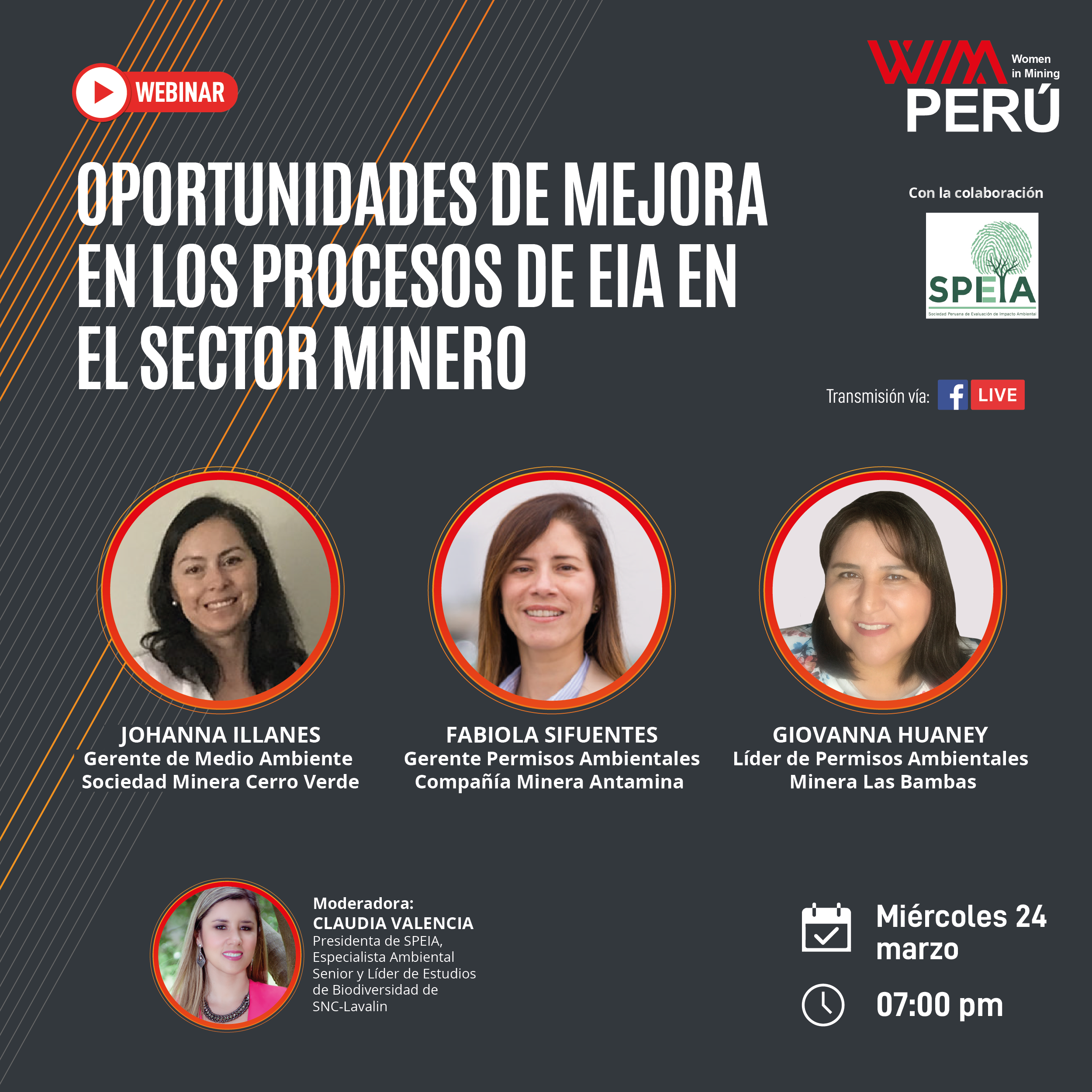 Claudia Valencia, Presidenta de la SPEIA, participará del evento del WiM PERÚ: Oportunidades de Mejora en los Procesos de EIA en el Sector Minero, a realizarse este 24 de marzo de 2021 a las 19:00 horas.